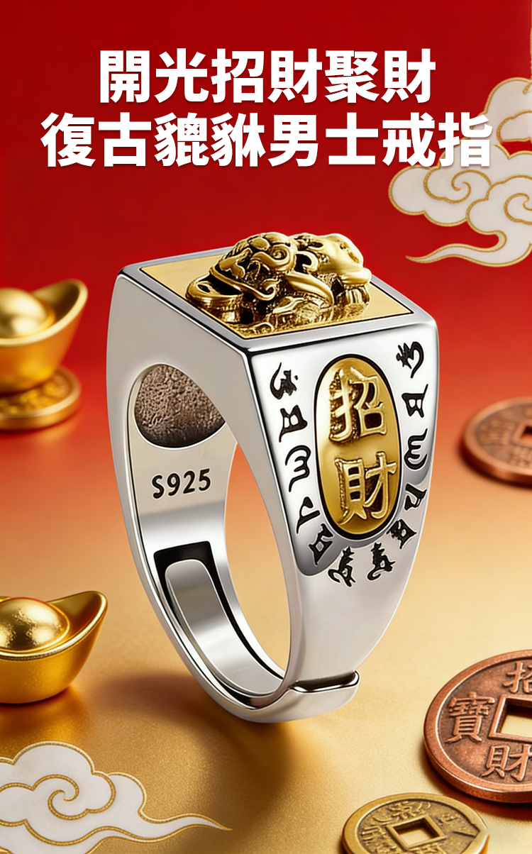 開光招財聚財復古貔貅男士戒指